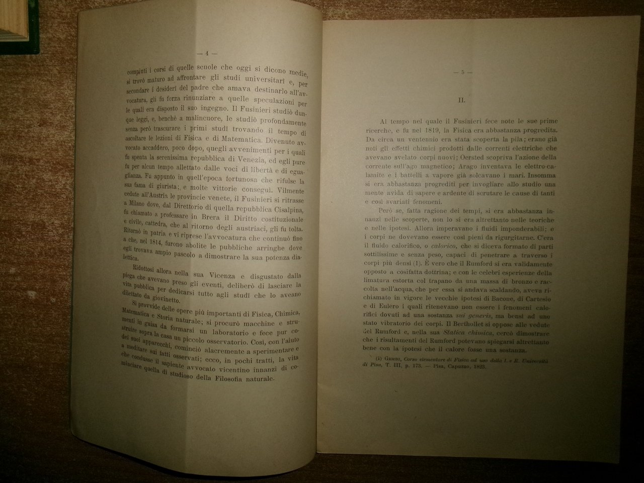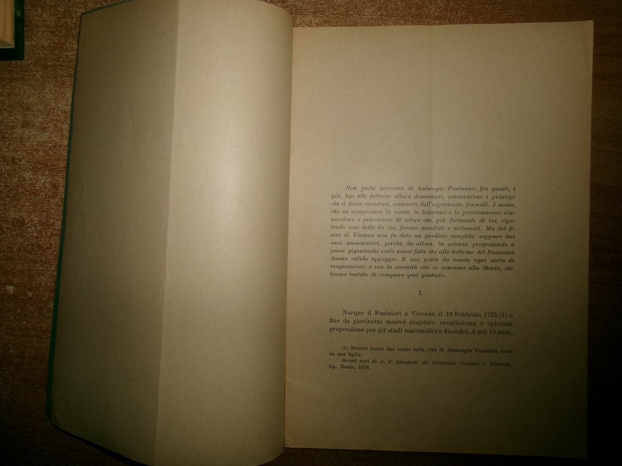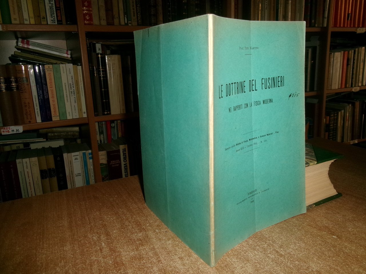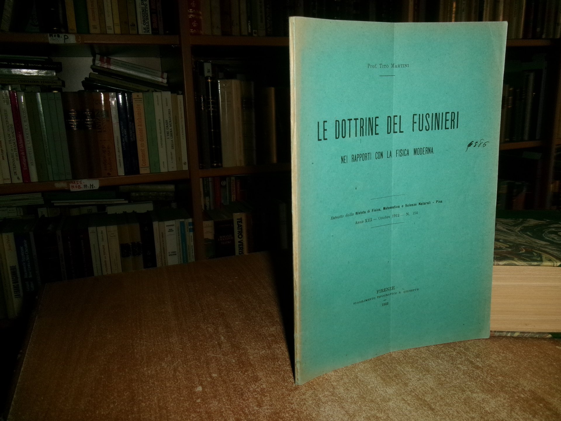 Prof. TITO MARTINI. Firenze, Stabilimento Tipografico S. Giuseppe, 1912. LE DOTTRINE DEL FUSINIERI nei rapporti con la Fisica Moderna. Estratto dalla Rivista di Fisica, Matematica e Scienze Naturali - Pisa Anno XIII - Ottobre 1912. In-8°, br. orig. 51 pp. In ottimo stato di conservazione. Neg. lett. mod. mob. F entro busta trasp.