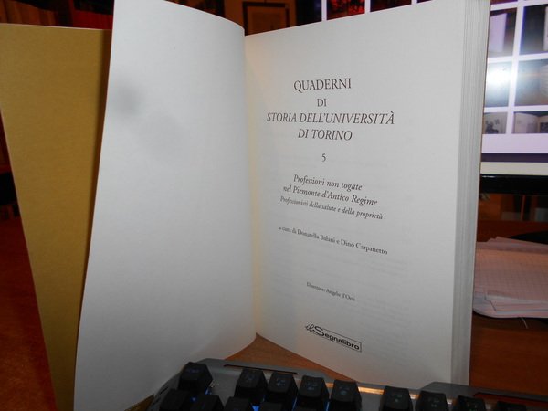 A cura di Donatella Balani e Dino Carpanetto. Torino, Il Segnalibro, 2003. Professioni non togate nel Piemonte d' Antico Regime. Professionisti della salute e della proprietà. In-8°, cartoncino edit. con risvolti. xiv, 441 pp. Come nuovo. Uff. stanzetta mob. a sinistra 2. carc.