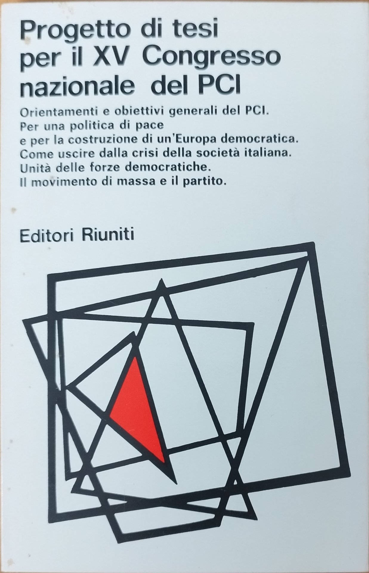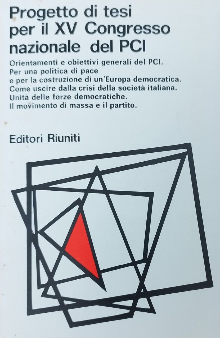 Orientamento e obiettivi generali del PCI. Per una politica di pace e per la costruzione di un'Europa democratica. Come uscire dalla crisi della società italiana. Unità delle forze democratiche. Il movimento di massa e il partito. in ottavo leg. bross. pp. 138 Buono (Good) Buon es. ma con segni del tempo.