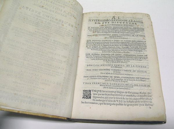 Zaragoza, por los herederos de Diego Dormer, 1680. Folio; 20 hojas, incluídas anteportada y portada con orla tipográfica, 608 pp. en impresión a doble columna, 9 hojas, la última con el escudo de Aragón grabado y dos secuencias de 11 pp. y 7 pp. con las representaciones a Diputados del reino de Aragón de Diego José Dormer y Juan José Porter y Casanate. Encuadernación de época en pergamino.