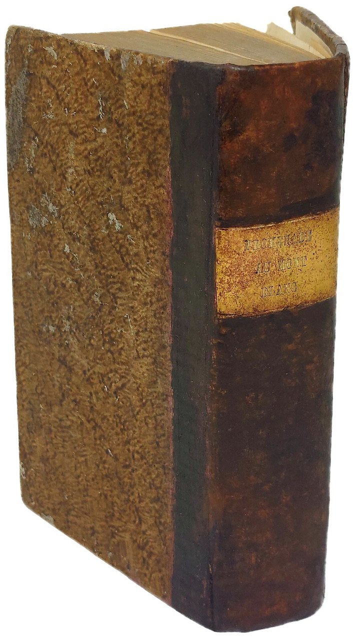 >in-12 (160x90 mm), pp. XXVI, (4), 627, legatura coeva in mezza pelle con titolo su tassello in oro al dorso. Seconda edizione di questo resoconto di varie gite intorno al massiccio del Bianco. L'autore parte da Ginevra e descrive diverse escursioni: a Chamounix, al Montarvert, alla Flégère, a Mégève, al Gran San Bernardo. Utile la tavola delle altezze delle varie località e le ore di cammino, comprese quelle a Courmayeur e Aosta. L'opera si conclude con il "Voyage dans le temps, ou les époques de la Nature", seguito dal sermone pronunciato a Ginevra il 28 giugno 1818 dal pastore Moulinié in occasione dell'alluvione che devastò la valle di Bagne. Buon esemplare, non comune. Quérard, VI, 341. Perret, 3122. Meckly, 133. Regards sur les Alpes, 54-C.