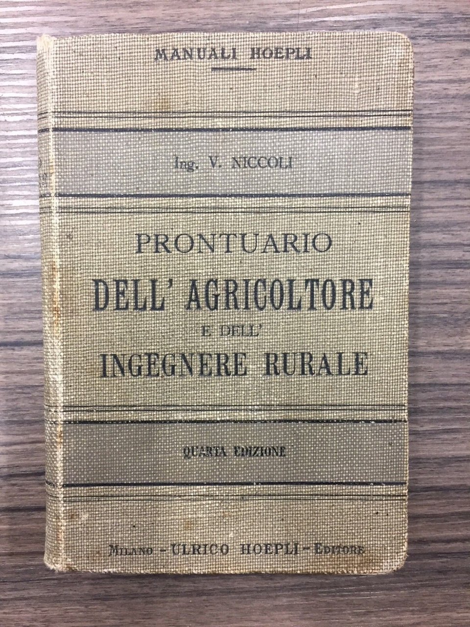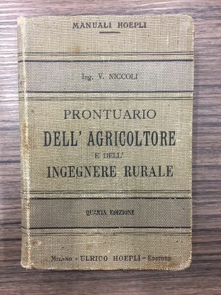 Manuale di agricoltura economia, estimo e costruzioni rurali. Milano. Hoepli 1900, 16°, pp. XXVIII+464+64. Leg. Edit. Con segni del tempo.