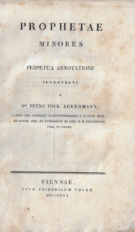 Propheta e minores perpetua annotatione illustrati a d.re Pietro Four. Ackermann