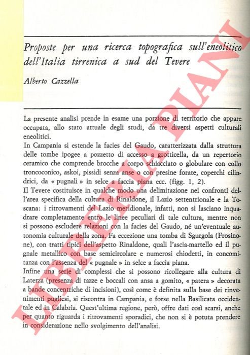 Proposte per una ricerca topografica sull'eneolitico dell'Italia tirrenica a Sud del Tevere.