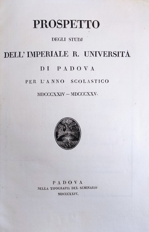 PROSPETTO DEGLI STUDI DELL'IMPERIALE R. UNIVERSITA' DI PADOVA PER L'ANNO SCOLASTICO MDCCCXXVI - MDCCCXXVII
