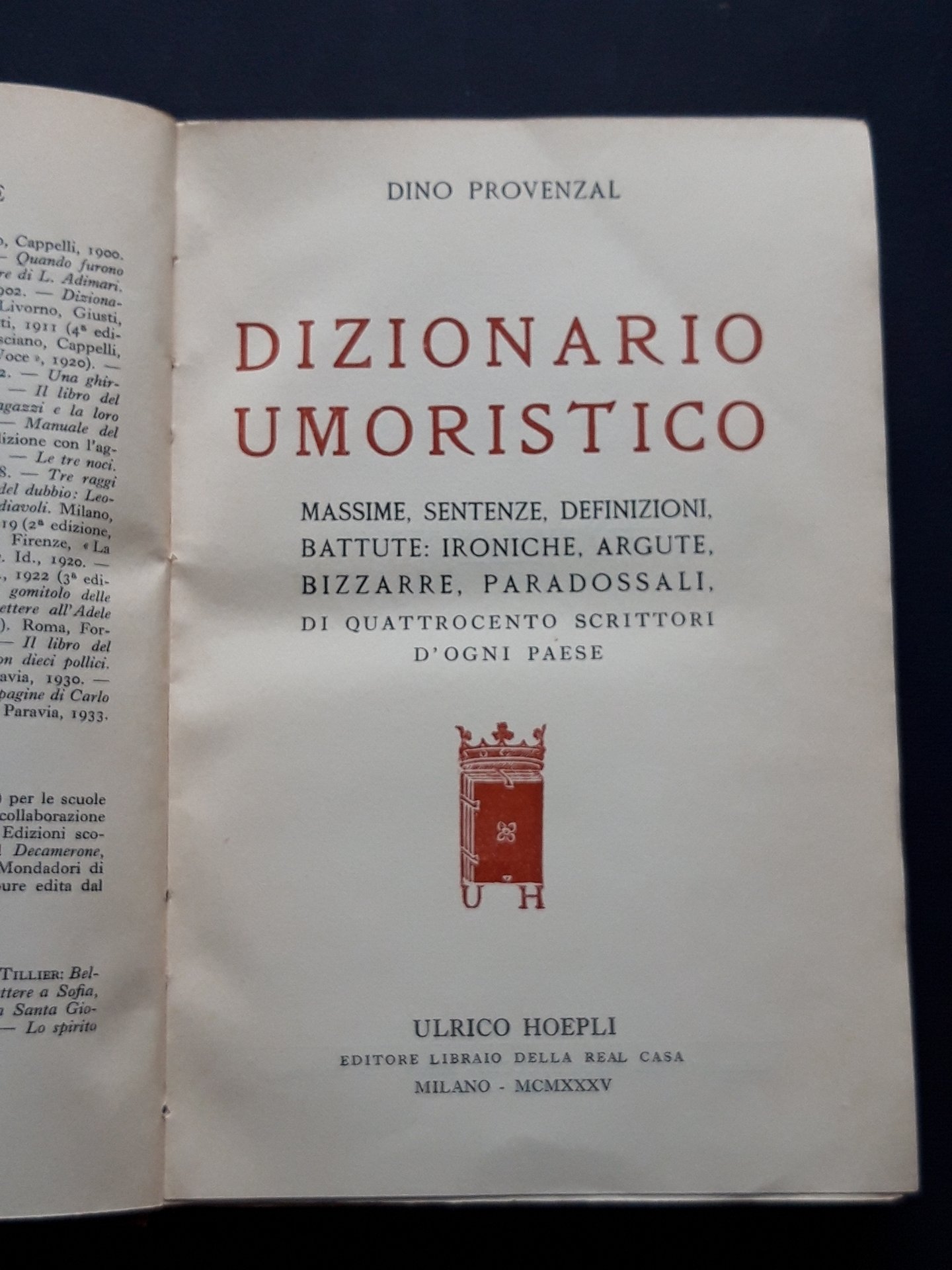 Provenzal Dino. Dizionario umoristico. Hoepli. 1935-I