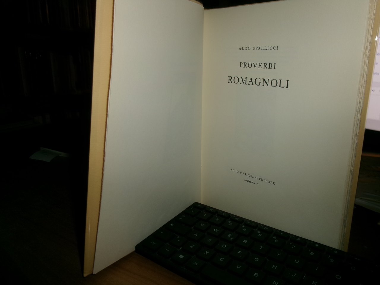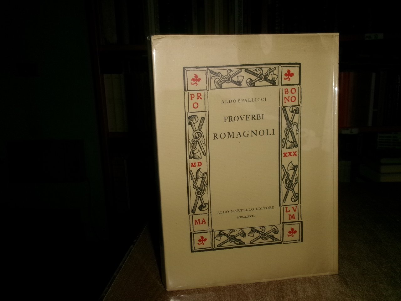 ALDO SPALLICCI. Milano, Aldo Martello Editore, 1967. PROVERBI ROMAGNOLI. In-8°, cart. edit. con doppia sovracopertina con risvolti. xvi, 114, (1) pp. con numerose illustrazioni in nero n.t. e tavole a colori f.t. Ottimo stato. Neg. Bol. mob. 20