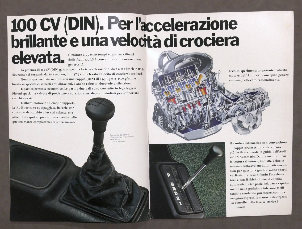 Pubblicità Automobilismo - Brochure Audi 100 Classe Sport-Confort - anni â70 Pag. 20 con molte illustrazioni. Copertina morbida - Testo in italiano. Condizioni molto buone.