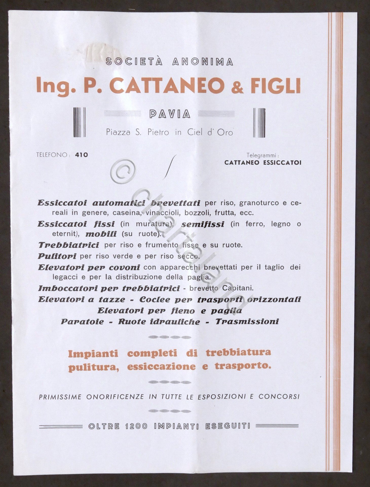 Pubblicità Brochure P. Cattaneo & Figli - Impianti di trebbiatura - 1935 ca.
