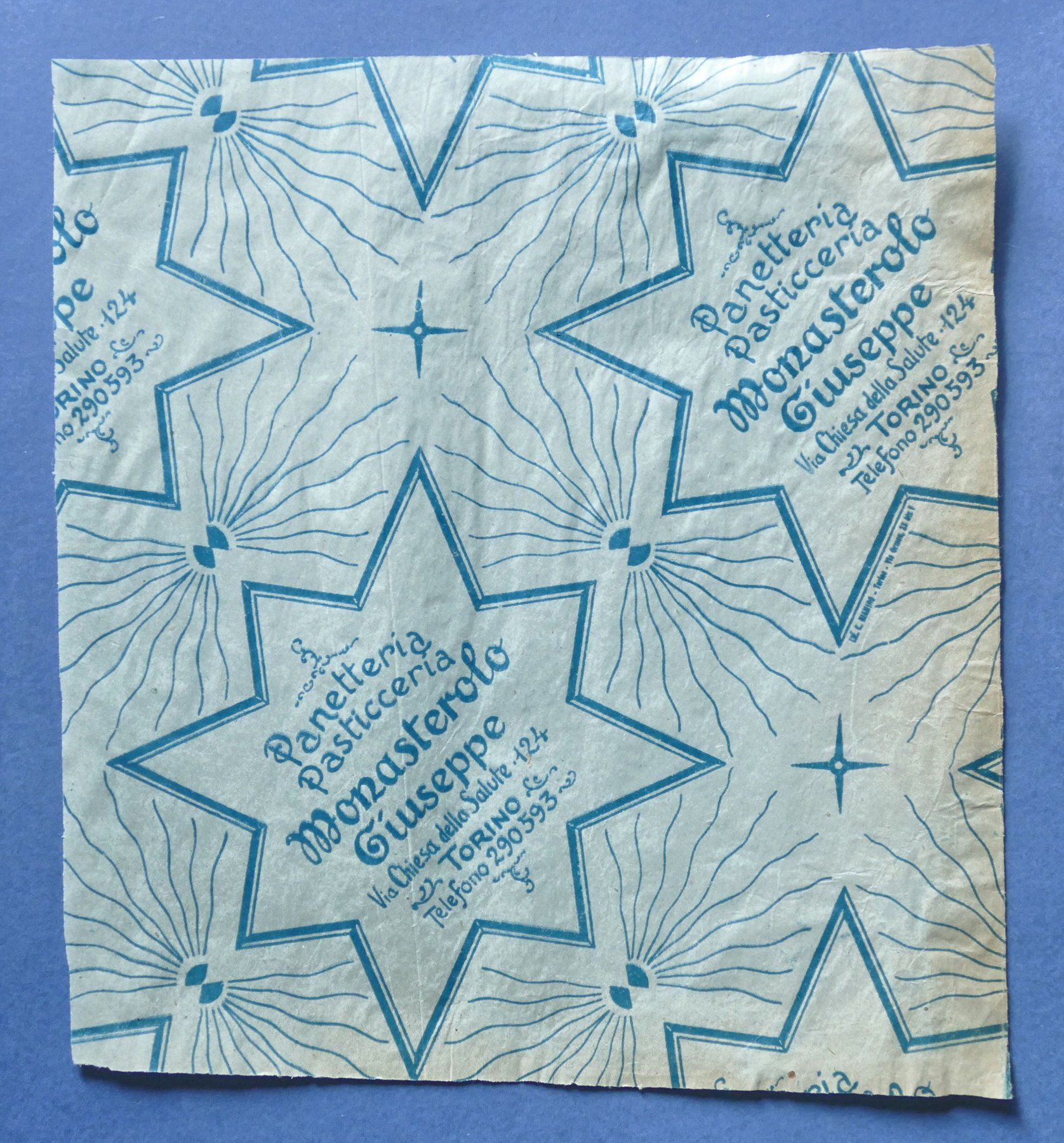 Pubblicità  Alimentari Carta confezione Panetteria Pasticceria Monasterolo Giuseppe - Torino Dimensioni: 23 x 25 cm ca. Condizioni molto buone.