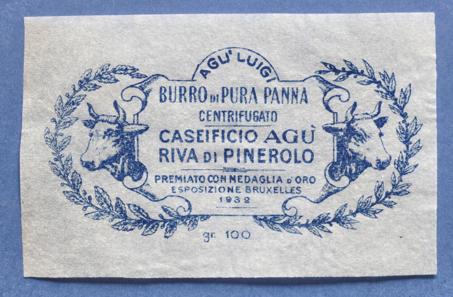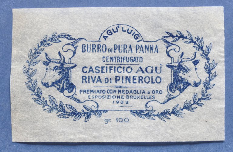 Pubblicità Carta confezione etichetta epoca Burro Caseificio Agù Riva Pinerolo