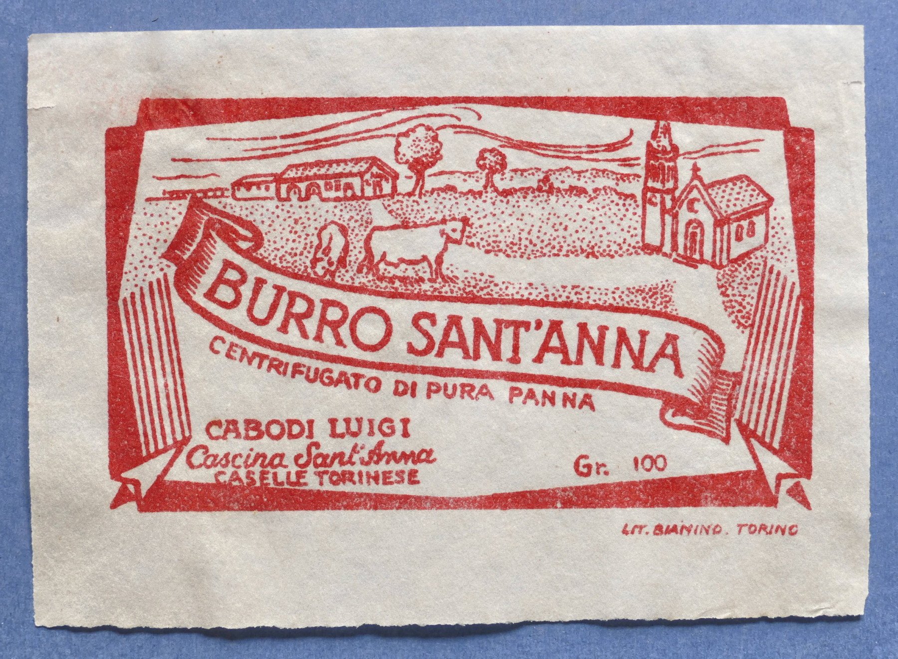Pubblicità Carta confezione etichetta epoca Burro Sant'Anna - Caselle Torinese