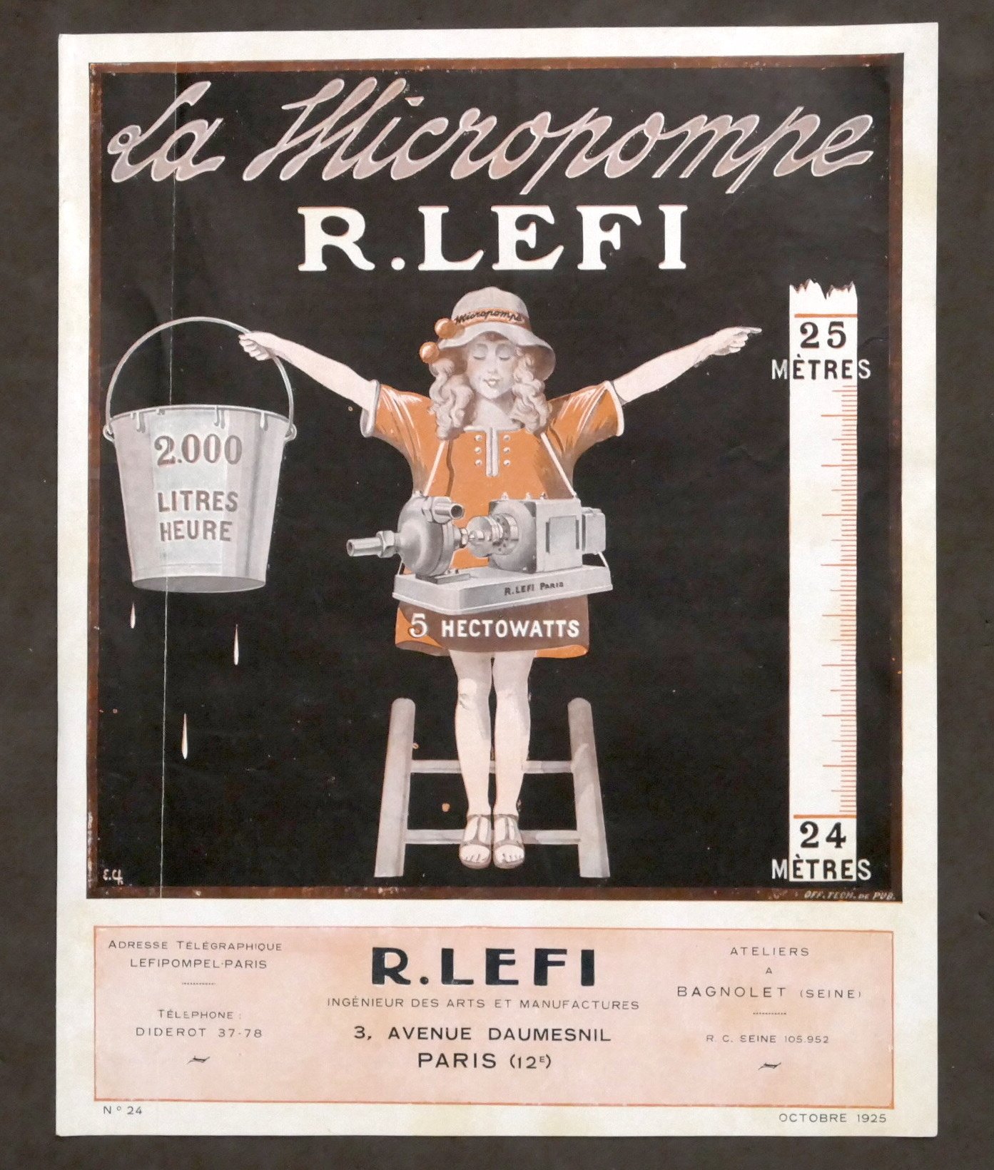 Pubblicità d'epoca - Brochure La Micropompe R. Lefi - 1925 Pag. 4 Lingua francese. Dimensioni: 21 x 27 cm ca. Buone condizioni.