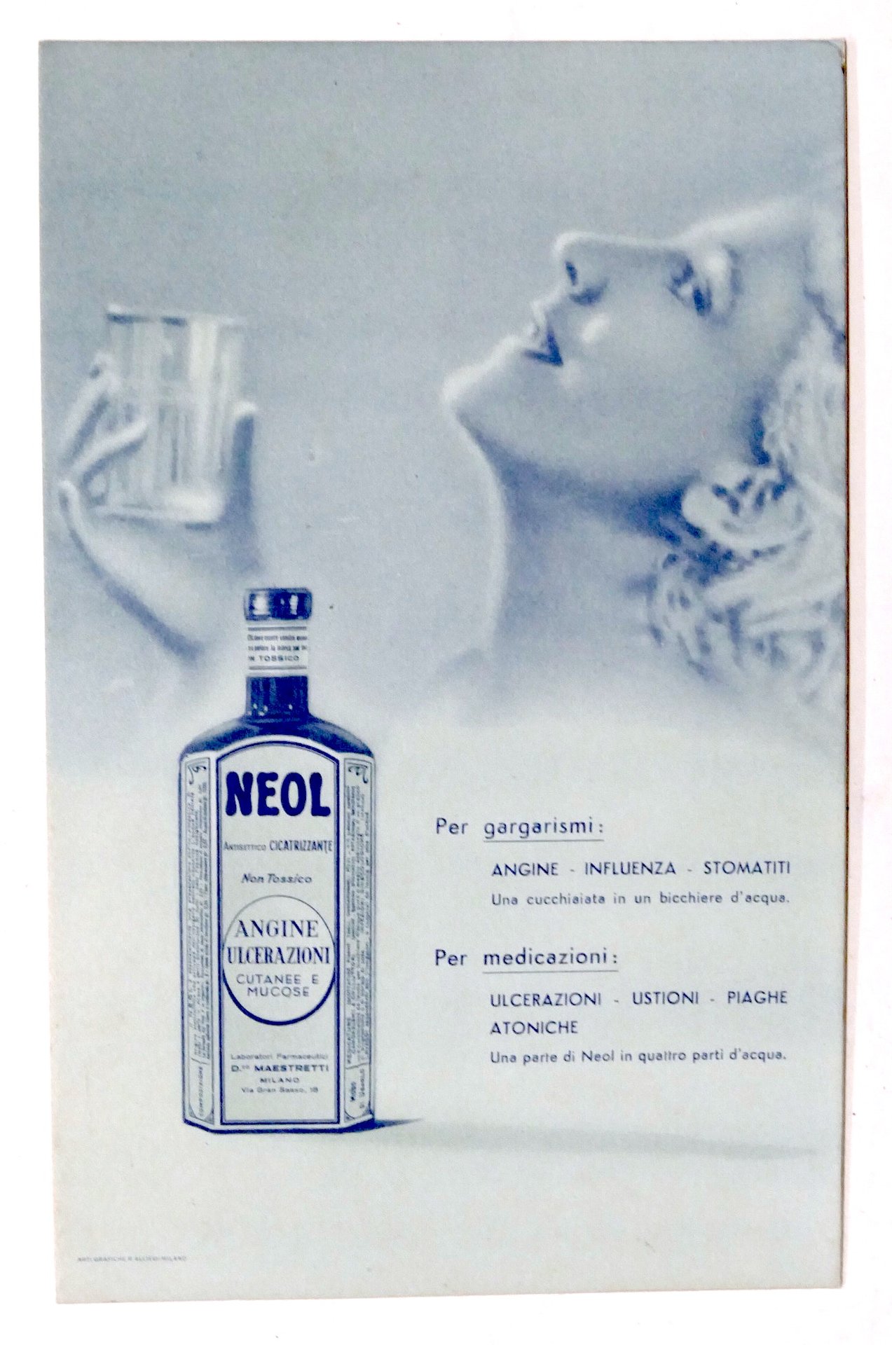 Pubblicità d'epoca carta assorbente - Neol - angine ulcerazioni