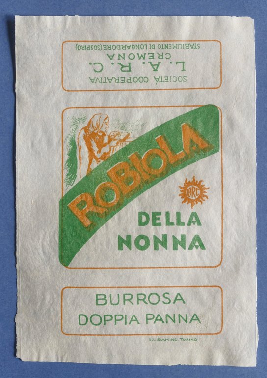 Pubblicità Etichetta epoca Robiola della Nonna - Cooperativa LARC - Cremona