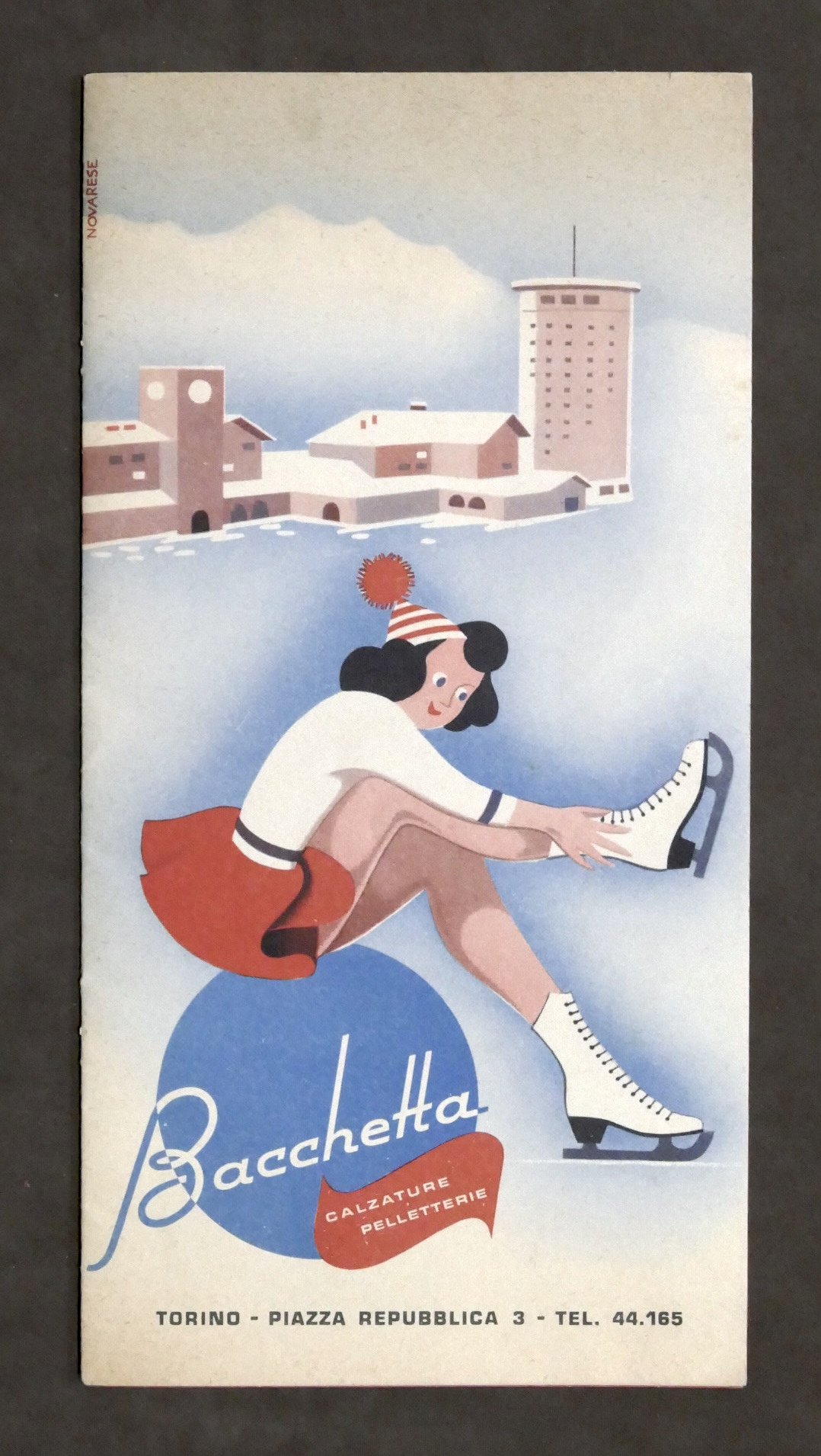 Pubblicità Moda - Brochure Calzature Pelletterie Bacchetta - Torino - anni '50 Pag. 10 Dimensioni: 11 x 22 cm ca. Condizioni molto buone. Piccola mancanza all'angolo superiore della copertina posteriore.