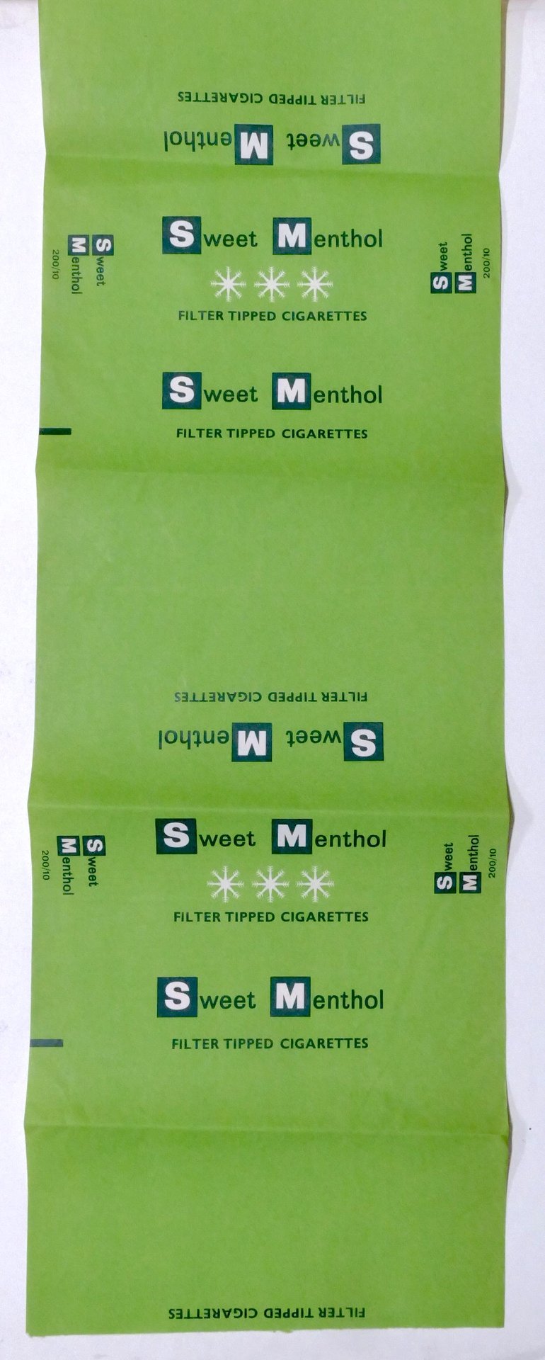 Pubblicità Tabacchi - Carta imballo stecche sigarette Sweet Menthol Filter Tipped Cigarettes Dimensioni: 27 x 80 cm. ca. Condizioni molto buone.