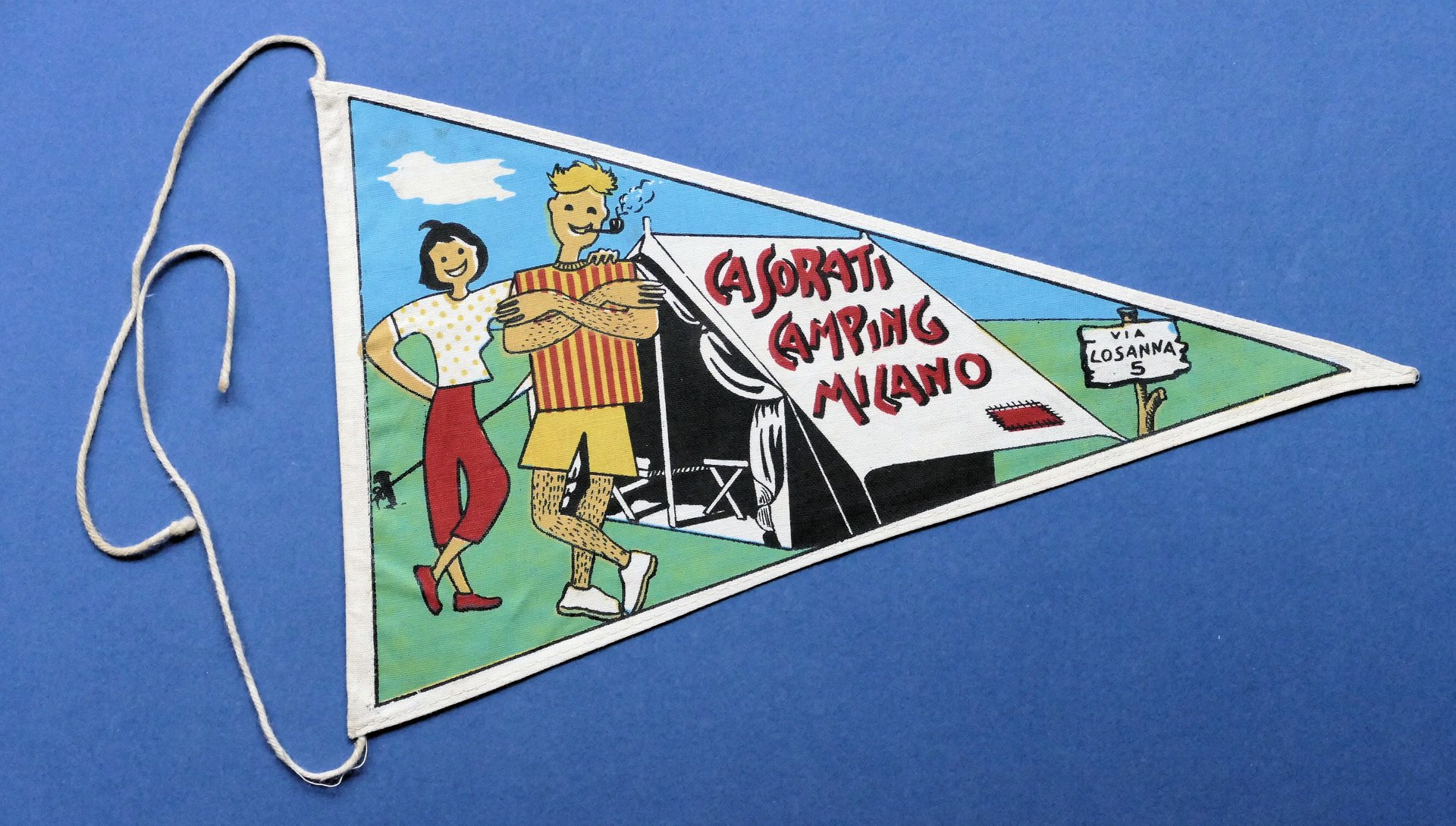 Pubblicità turismo - Gagliardetto Casorati Camping Milano - via Losanna 5 Dimensioni: 14 x 25 cm ca. Condizioni molto buone