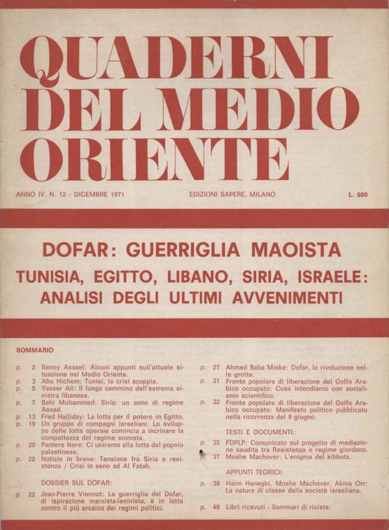 Quaderni del Medio Oriente (n. 12 dicembre 1971)