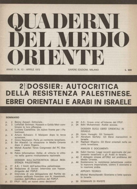 Quaderni del Medio Oriente (n. 13 aprile 1972)