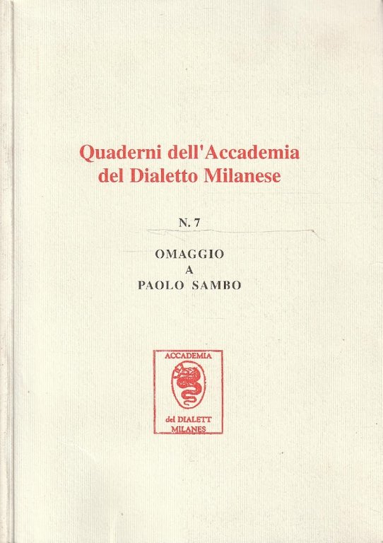 Quaderni dell'Accademia del Dialetto Milanese n^ 7 omaggio a Paolo Sambo