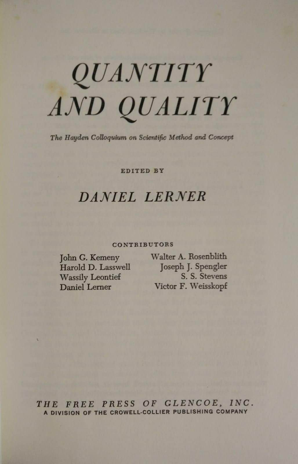 QUANTITY AND QUALITY. THE HAYDEN COLLOQUIUM ON SCIENTIFIC METHOD AND CONCEPT