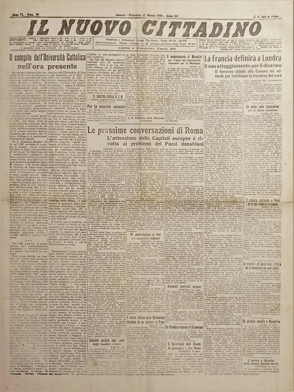 Quotidiano Il Nuovo Cittadino N. 60 - La Francia definirà a Londra - 1934 Testo in lingua italiana. Pagine 6 con illustrazioni. Condizioni discrete/buone con segni del tempo come da foto. Â