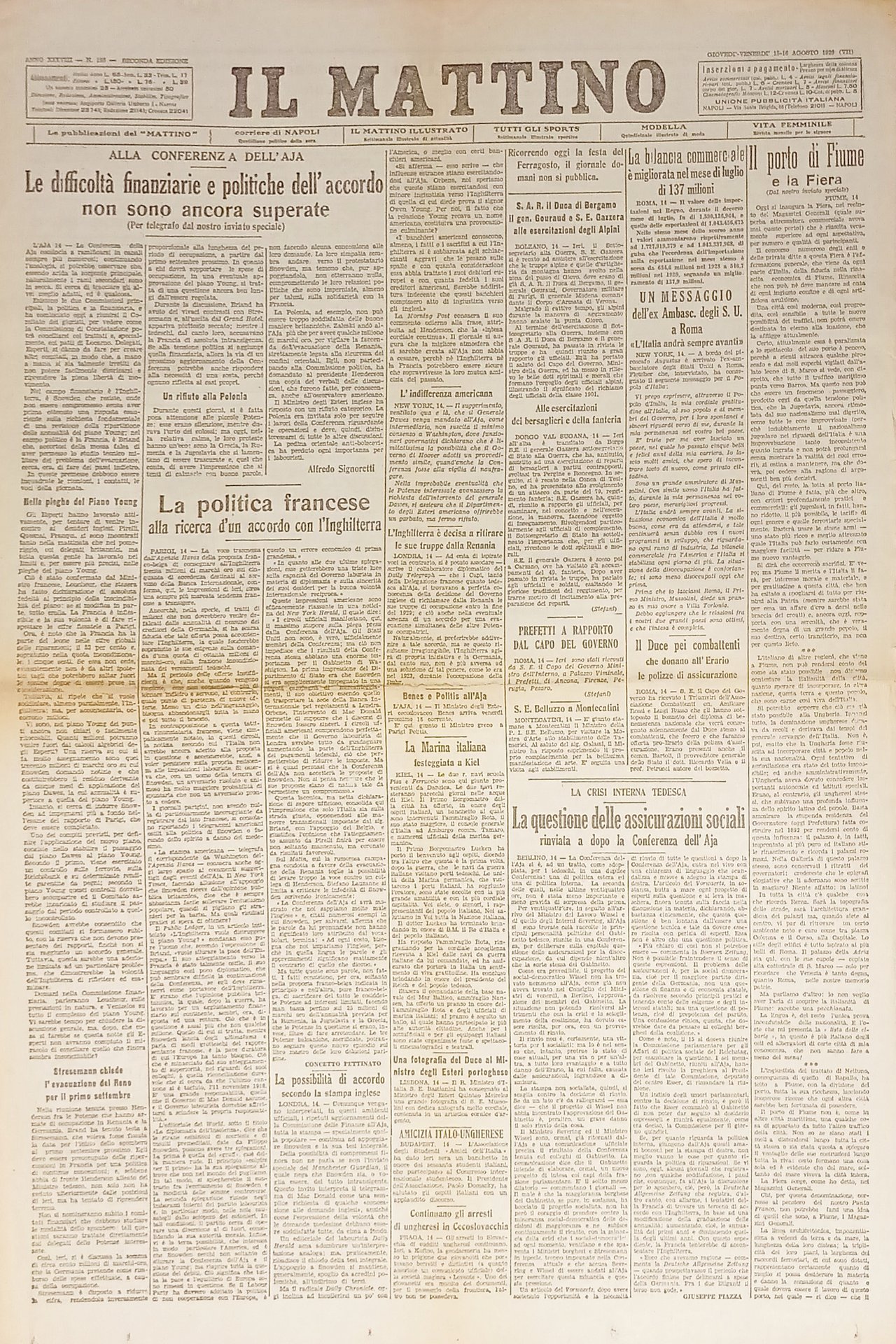 Quotidiano Napoli - Il Mattino n. 195 - 1929 Le difficoltà finanziarie