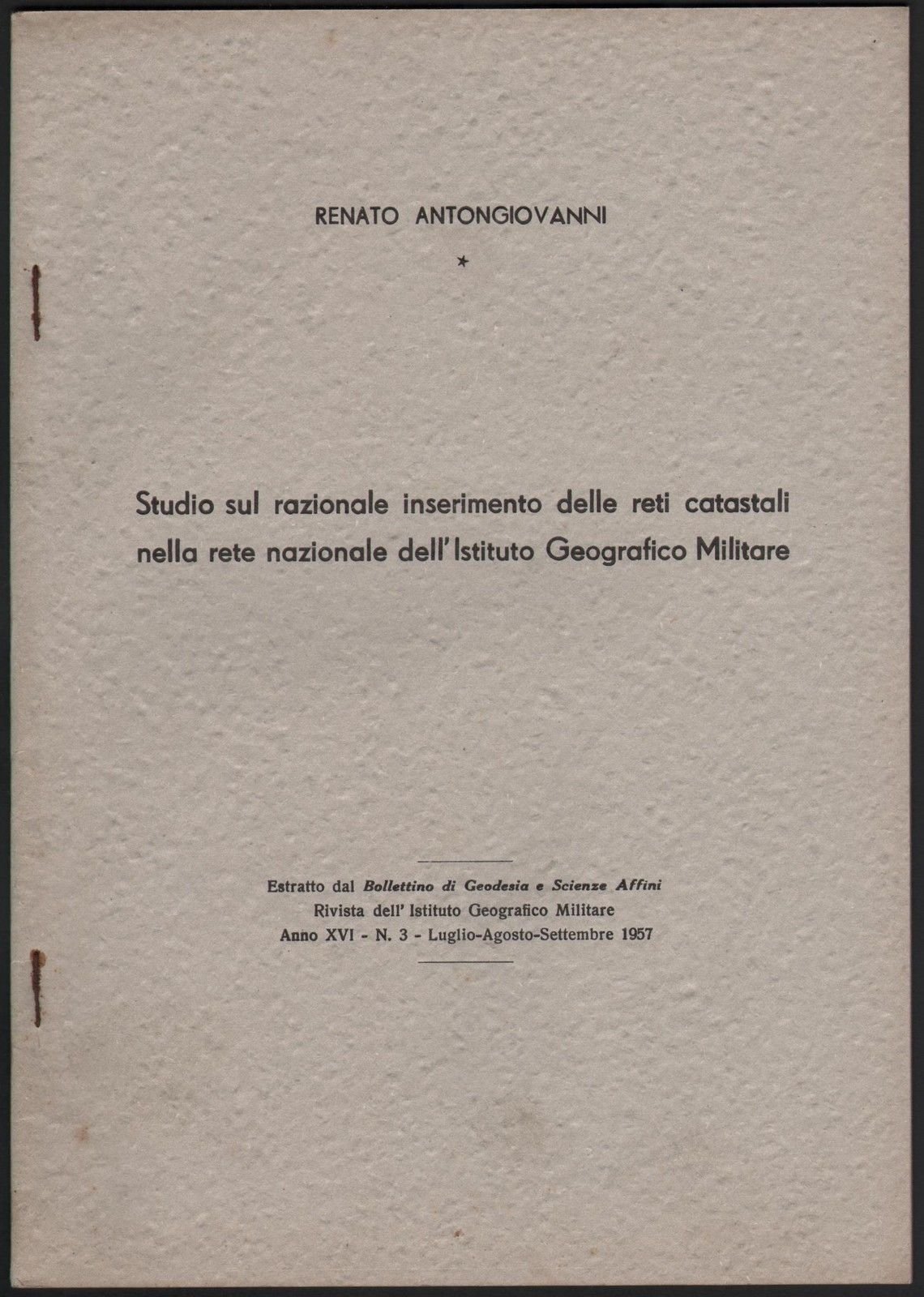 R. Antongiovanni Studio Sul Razionale Inserimento Delle Reti Catastal IGM 1957
