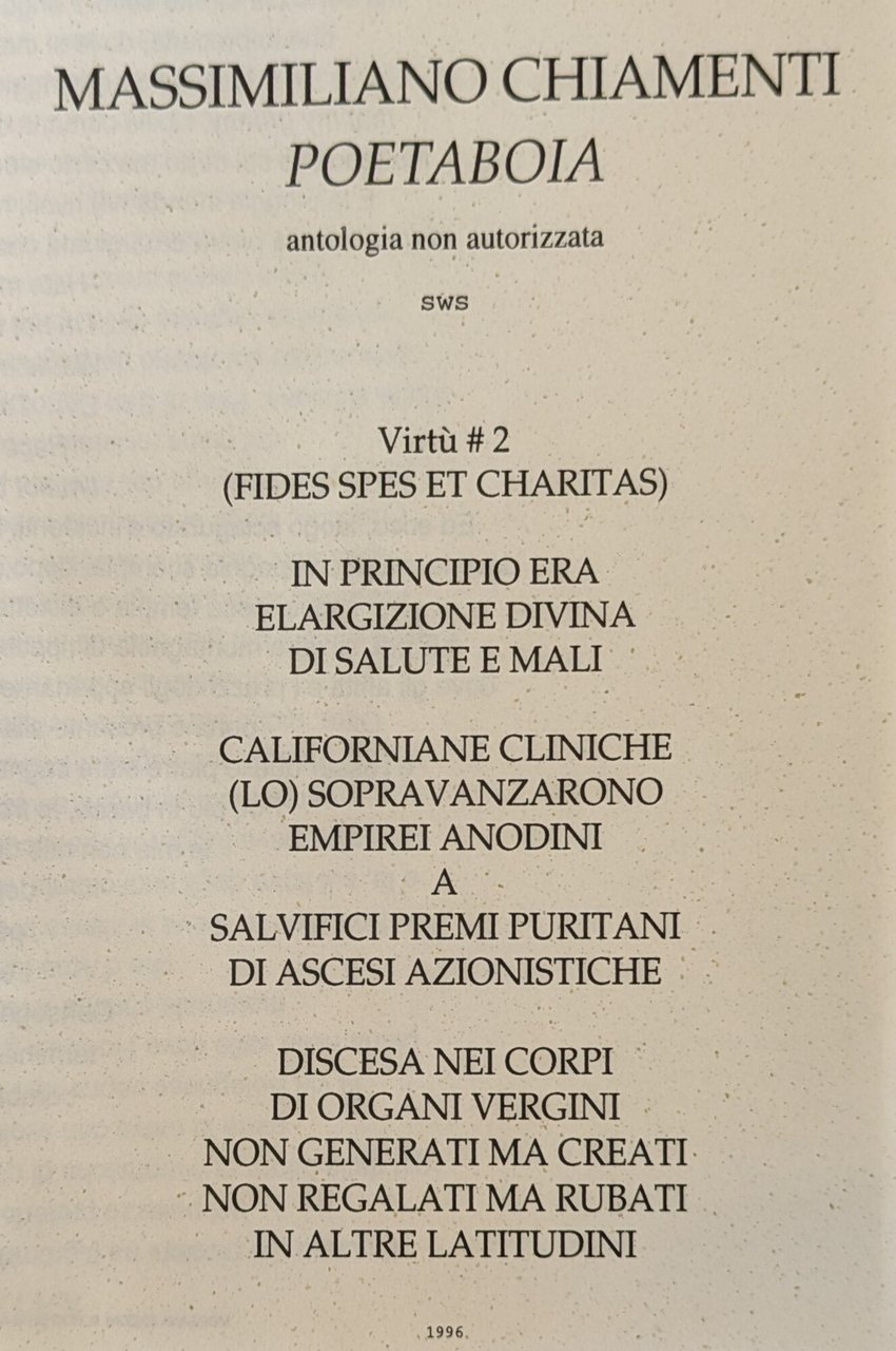 Massimiliano Chiamenti, Poetaboia, 1996;