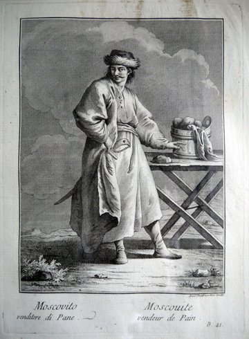 Racçolta di Stampe che representano Figure e Abiti di varie Nazione (1783-1791). B: 41: Moscovito venditore di Pane.
