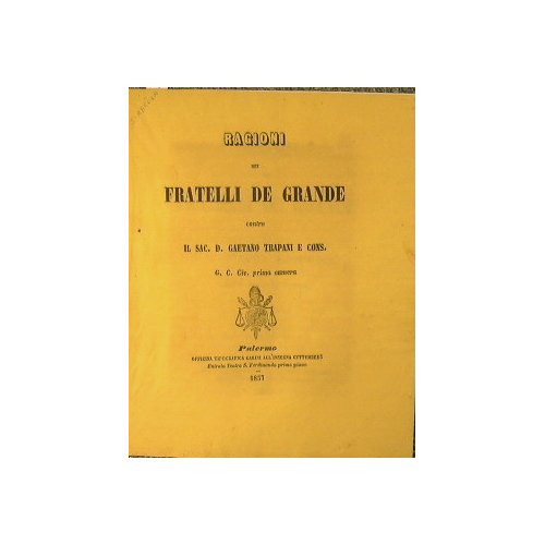 Ragioni dei Fratelli De Grande contro il Sac.D.Gaetano Trapani e Cons. G.C.Civ .prima camera. | Rare and modern books | Di Marco Pietro