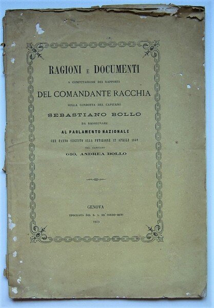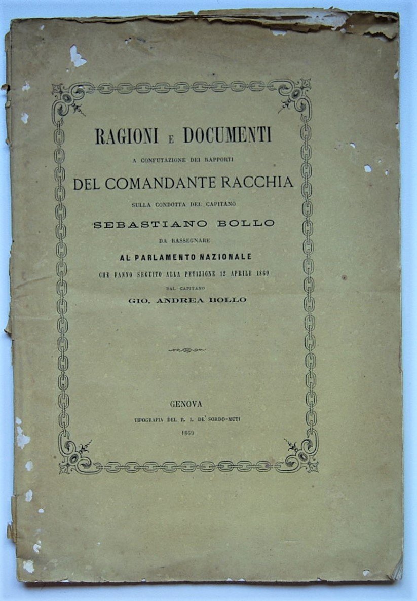 RAGIONI E DOCUMENTI A CONFUTAZIONE DEI RAPPORTI DEL COMANDANTE RACCHIA SULLA CONDOTTA DEL CAPITANO SEBASTIANO BOLLO.
