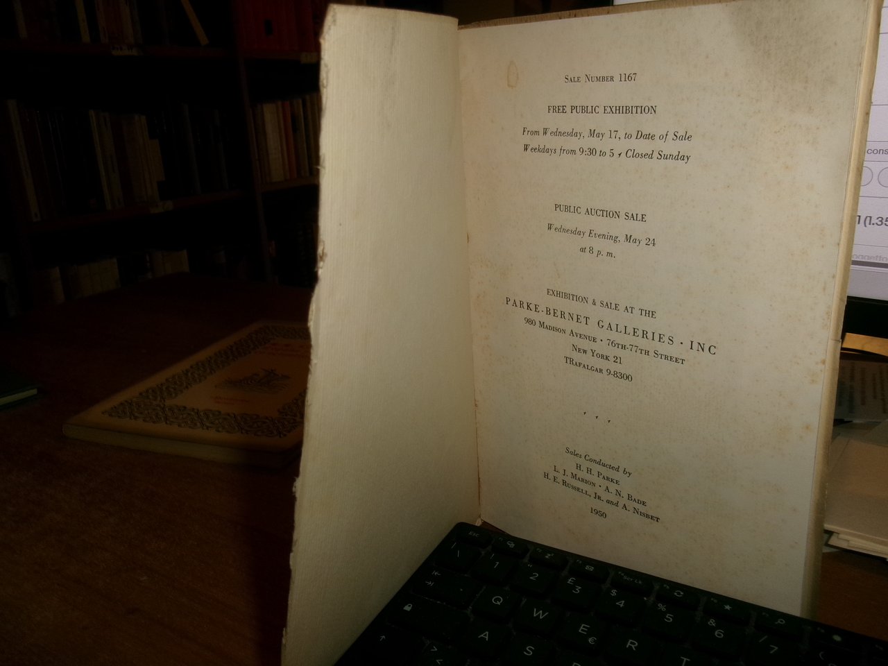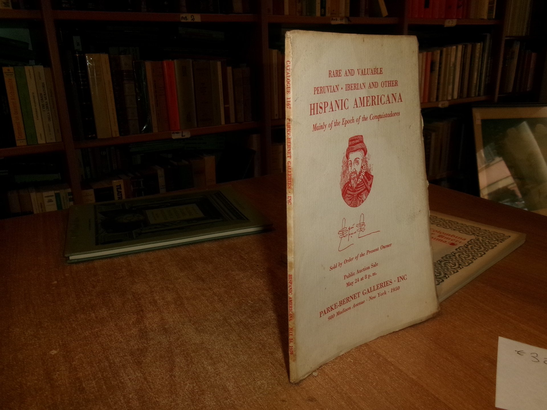 PARKE-BERNET GALLERIES. New York, 1950. Rare And Valuable Peruvian. Iberian and Other HISPANIC AMERICANA. Mainly of the Epoch of the Conquistadores... In-8°, br. orig. (vi), 69 pp. con alcune riproduzioni n.t. Segni del tempo nelle copertine ma ben conservato con testo in inglese. Neg. mob. E entro busta trasp.