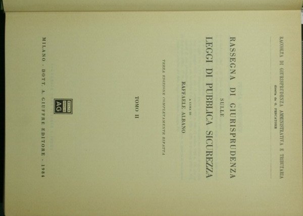 Rassegna di giurisprudenza sulle leggi di pubblica sicurezza. Vol. II