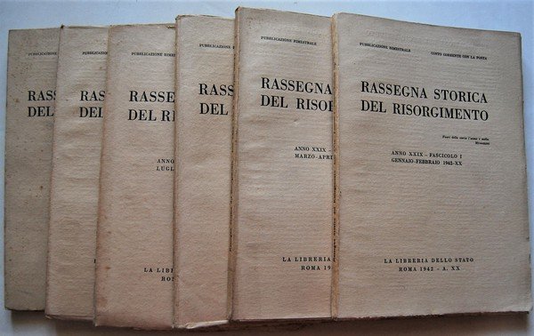 Societa' Nazionale per la Storia del Risorgimento Italiano, 1929. In-8, brossura, 4 fascicoli. Offriamo l?annata completa del 1929. In buono stato