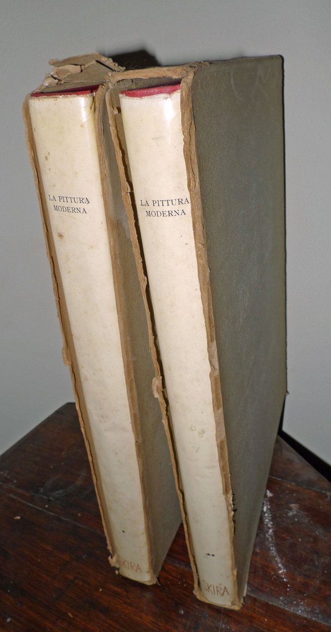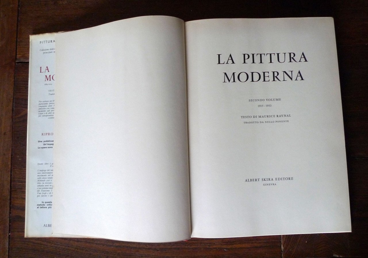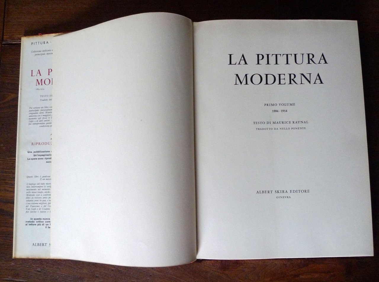 LA PITTURA MODERNAPITTURA, COLORE, STORIA.- VOLUME 1: LE GRANDI CORRENTI CREATRICI DALL'IMPRESSIONISMO AL CUBISMO.- VOLUME 2: LE NUOVE ESPERIENZE DAL SURREALISMO ALL'ARTE ASTRATTA.testo di Maurice Raynal,tradotto da Nello Ponente.Albert Skira Editore, Ginevra (CH) 1958,copertina rigida, rilegatura in tela,sovraccoperta illustrata, custodia in cartoncino,34,5x25 cm., pp.163; 189,illustrazioni a colori su tavole applicate sulle pagine,PITTURA * COLORE * STORIACOLLEZIONE DIRETTA DA ALBERT SKIRA,peso: KG.4,9cod.10120CONDIZIONI DEI LIBRI: buone,le custodie in cartoncino sono usurate,imperfezioni alle sovraccoperte e alle copertinein tela,pagine leggermente ingiallite