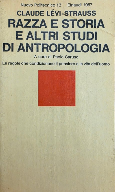 RAZZA E STORIA E ALTRI STUDI DI ANTROPOLOGIA. LE REGOLE CHE CONDIZIONANO IL PENSIERO E LA VITA DELL' UOMO