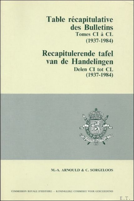 RECAPITULERENDE TAFEL VAN DE HANDELINGEN, DELEN CI - CL ( 1937 - 1984). TABLE RECAPITULATIVE DES BULLETINS, TOMES CI A CL ( 1937 - 1984).