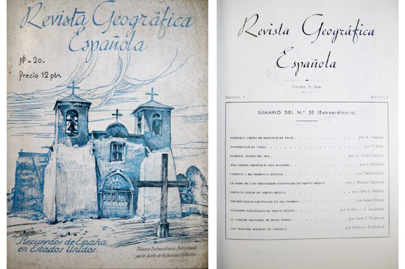 Madrid, "Revista Geográfica Española", Ministerio de Asuntos Exteriores, s.a. (1942). 4to. cuadrado; 108 pp., con numerosas ilustraciones fotográficas de V. Salas y otros; mapas entre el texto, más 6 láminas y 14 hojas con anuncios publicitarios. Cubiertas originales.