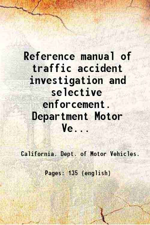 Reference manual of traffic accident investigation and selective enforcement. Department Motor Vehicles, California Highway Patrol. 1938