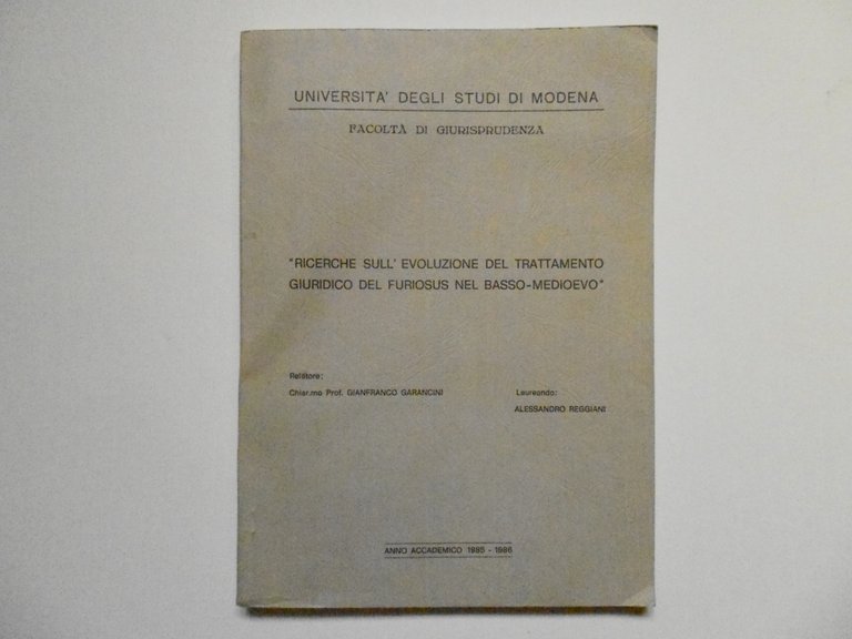 Reggiani Alessandro Ricerche sull' Evoluzione del Trattamento Giuridico 1986