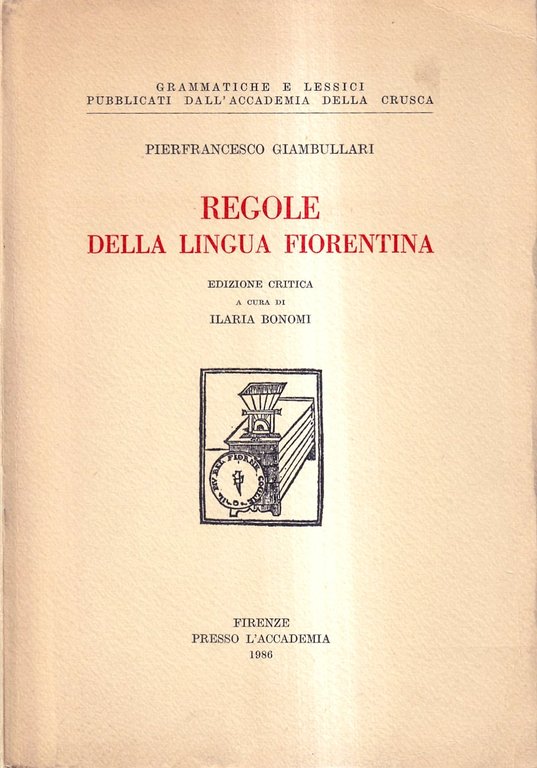 "Grammatiche e lessici pubblicati dall'Accademia della Crusca". Edizione critica a cura di Ilaria Bonomi - Brossura editoriale a stampa, 351 pagine ancora intonse. Fioriture ai tagli, peraltro opera in ottime condizioni. SPEDIZIONE IN 24 ORE DALLA CONFERMA DELL'ORDINE.