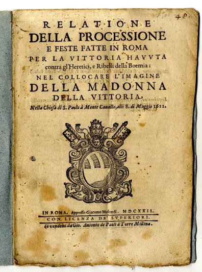 Relatione della processione e feste fatte in Roma per la vittoria havuta contra gl'Heretici, e Ribelli della Boemia nel collocare l'imagine della Madonna della Vittoria,