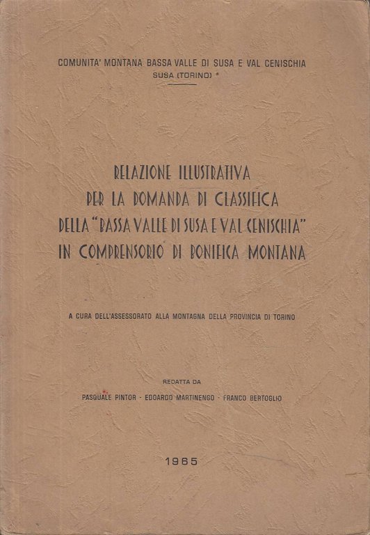 RELAZIONE ILLUSTRATIVA PER LA DOMANDA DI CLASSIFICA DELLA BASSA VALLE DI SUSA E VAL CENISCHIA IN COMPRENSORIO DI BONIFICA MOΝΤΑΝΑ