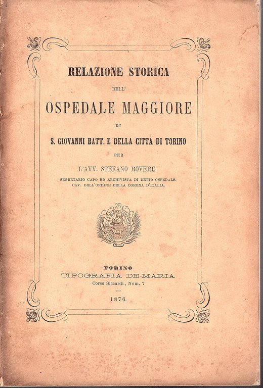 Relazione storica dell' Ospedale Maggiore di S. Giovanni Batt. e della Citta di Torino