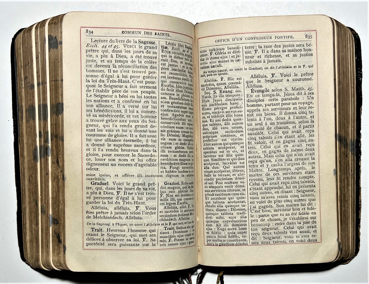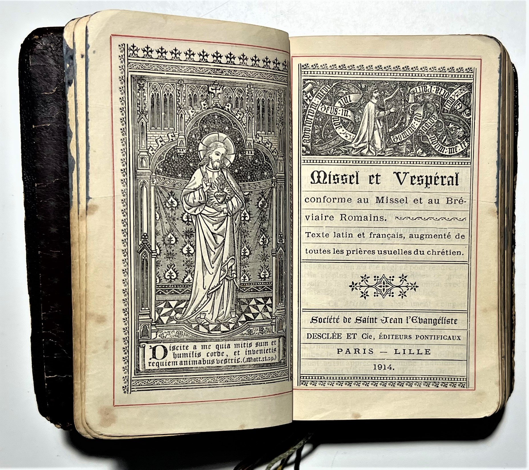 Libro Tascabile di Religione - Missel et Vespéral conforme au Missel et au Bréviaire Romains - ed. 1914 Testo in lingua francese. Pagine 1383 Copertina semirigida. Condizioni molto buone con piccoli segni del tempo come da foto.