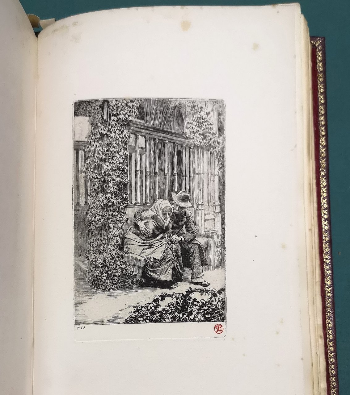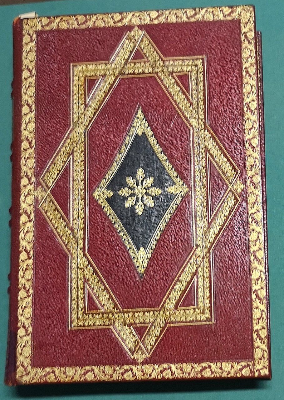>in-4, pp. 380, con la doppia suite di 10 acqueforti originali di Tissot in 2 stati, una serie è firmata a lapis dall'artista, l'altra ha il timbro in rosso. Superba legatura coeva in marocchino granata, riccamente ornata in oro ai piatti con tripla cornice vegetale e fleuron centrale in oro a mosaico su marocchino nero, titolo in oro su tassello al dorso, anch'esso fittamente ornato in oro, taglio sup. dorato, doppie dentelles, sguardie in seta rossa. Edizione di pregio, tirata in soli 550 esemplari, il presente è uno dei 20 su carta giappone (n.6) e con le suite in doppio stato (su carta Japon e Hollande) e firmate a lapis. Rarità bibliografica in eccezionale legatura coeva. Buon esemplare con qualche macchietta rossa nel margine bianco di alcune tavole.