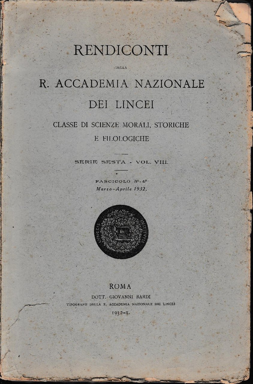 Rendiconti della R. Accademia dei Lincei. Classe di scienze morali, storiche e filologiche, serie sesta- vol. VII, fasc. 3^ e 4^ Marzo-Aprile 1932