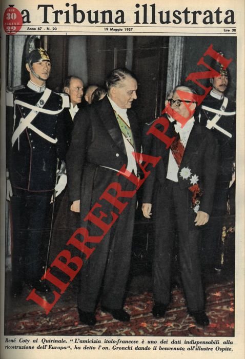 René Coty al Quirinale. “L'amicizia italo-francese è uno dei dati indispensabili alla ricostruzione dell'Europa” , ha detto l'on. Gronchi dando il benvenuto all'illustre Ospite.